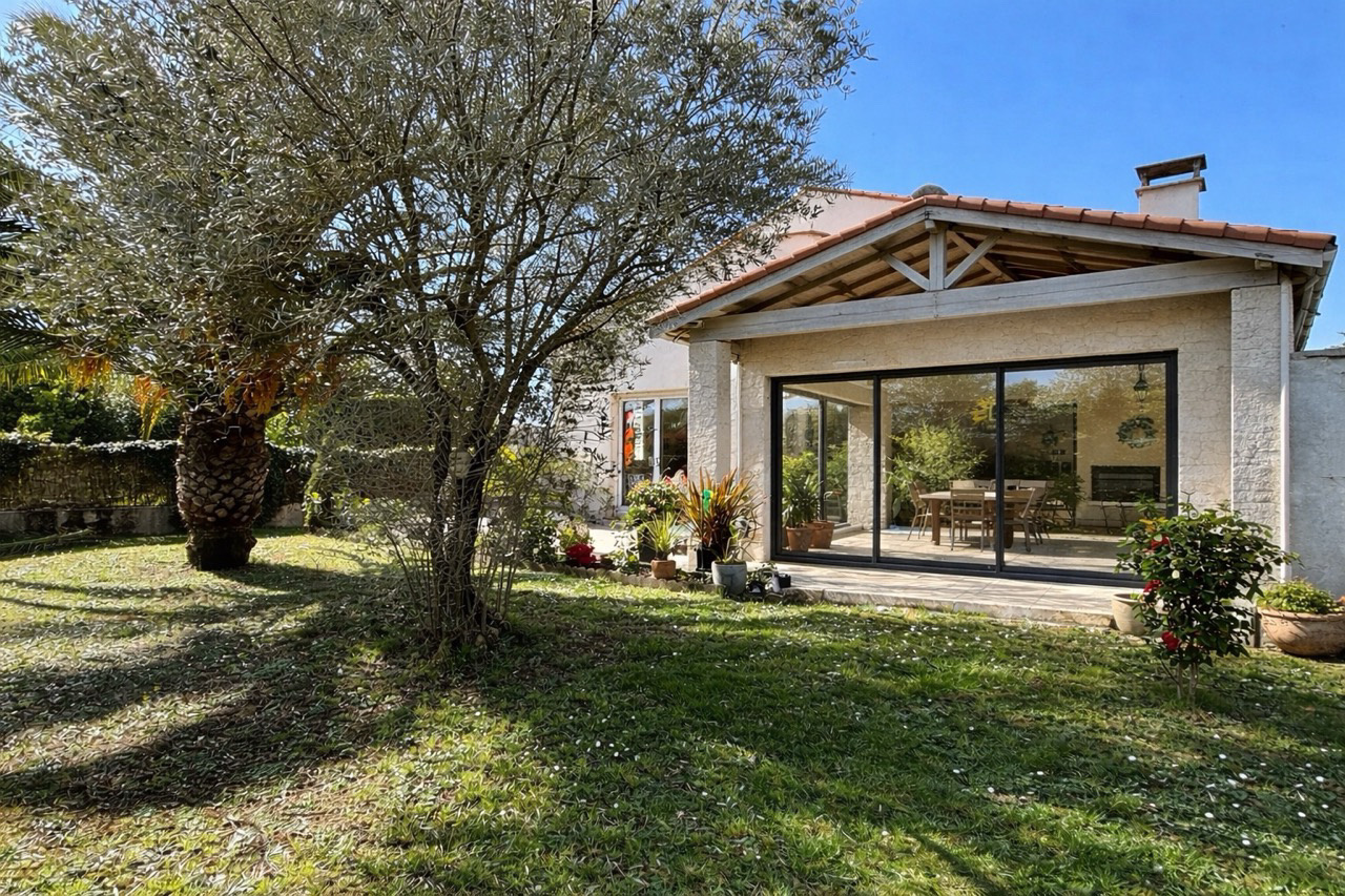 Nous vous proposons cette maison de famille de 4 chambres sur un terrain de 985 m2, clos et arboré et très bien exposée. Construite en 1998 , elle offre en RDC une large piéce de vie ( 63m2) ouverte sur la terrasse du jardin. Avec 3 chambres , une salle de bain avec douche , des wc, une buanderie , une cuisine avec son arrière cuisine. Une vie en plain -pied est parfaitement possible. A l'étage une bibliothèque ouverte en mezzanine, une grande chambre, une salle de bain avec douche , des wc. Un garage de 25m2 avec grenier. En parfait état, cette maison est à visiter sur RDV -Attention quelques photos sont des projections virtuelles ( extension et peinture blanche intérieur ) .